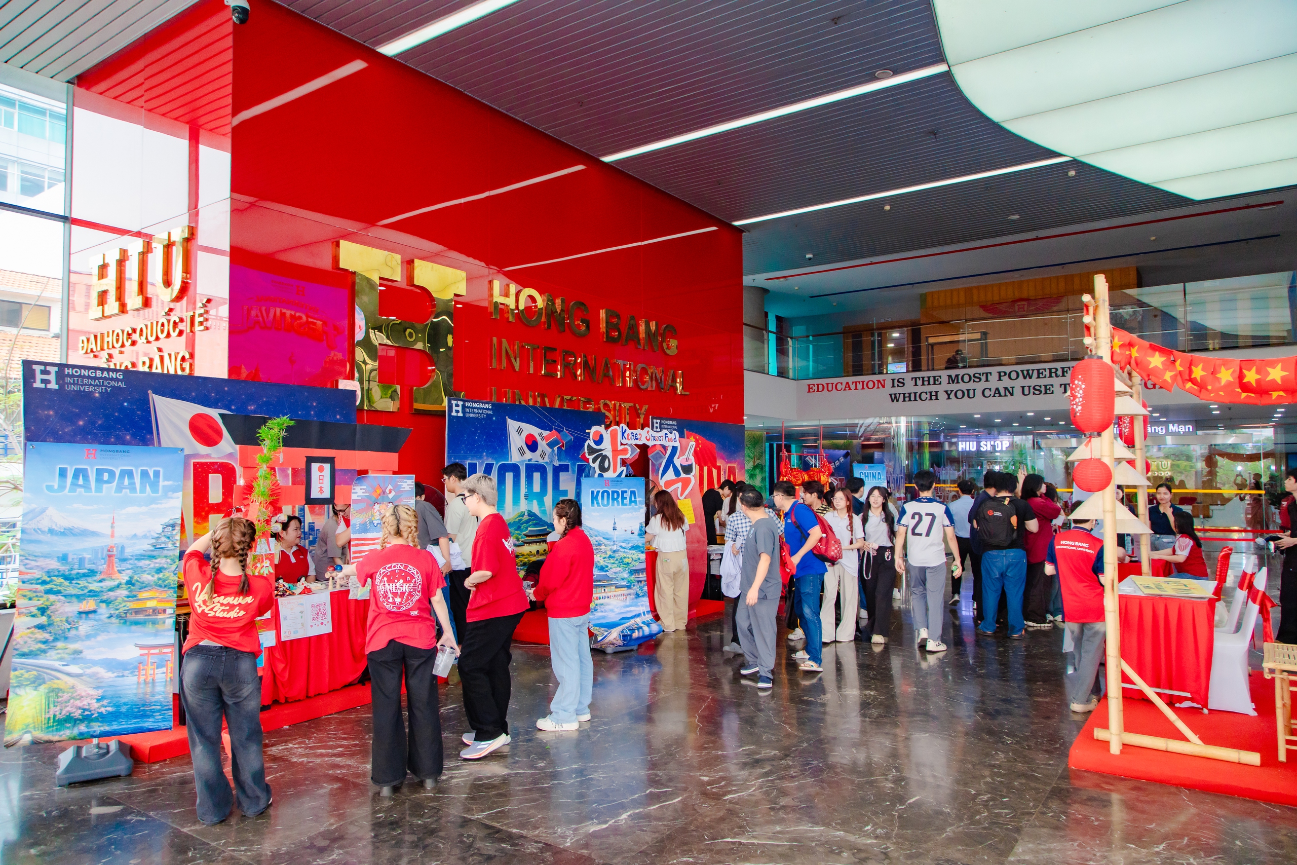 Học sinh sinh viên trải nghiệm văn hóa tại các gian hàng quốc gia.